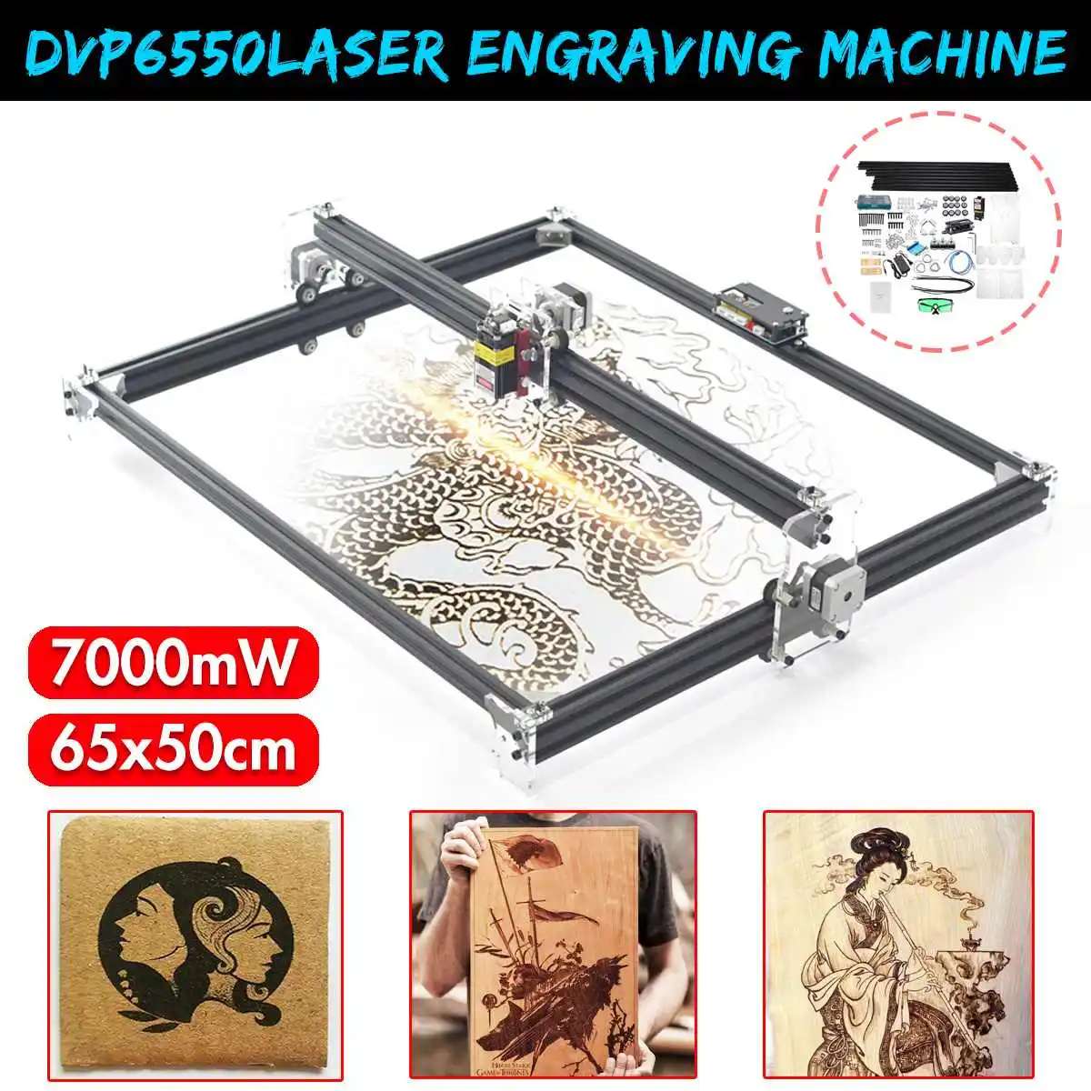 New Product DVP6550 7000MW/6000MW/3000MW Blue CNC Laser Engraving Machine 2Axis DC 12V DIY Engraver Desktop Woo